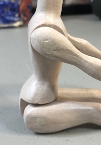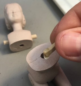 Even if you’re experienced, you may mix a bad batch or occasionally have glue that’s too old, (even if it’s newly-purchased) so after each gluing task set the extra aside to make sure it ‘sets up.’ Before testing your Hitty’s movements, check the leftover on your toothpick to make sure it hardened.