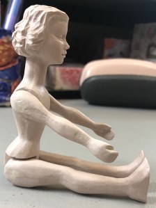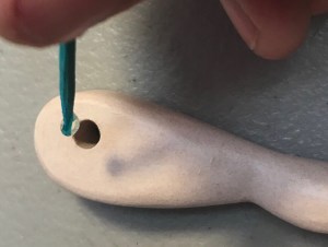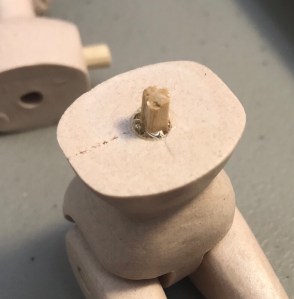 Use the arm pegs as a guide to be sure the head is on straight and make a final check before sitting her in a safe spot to dry. Let the glue set for at least an hour before going on to the next step. It won’t be fully hardened until after 24 hours.