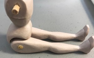 When you’re ready to glue your Hitty, mix a small batch of epoxy as instructed above. Place both legs on the body and place it in a sitting position. (Legs are not yet glued.)